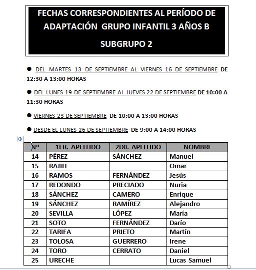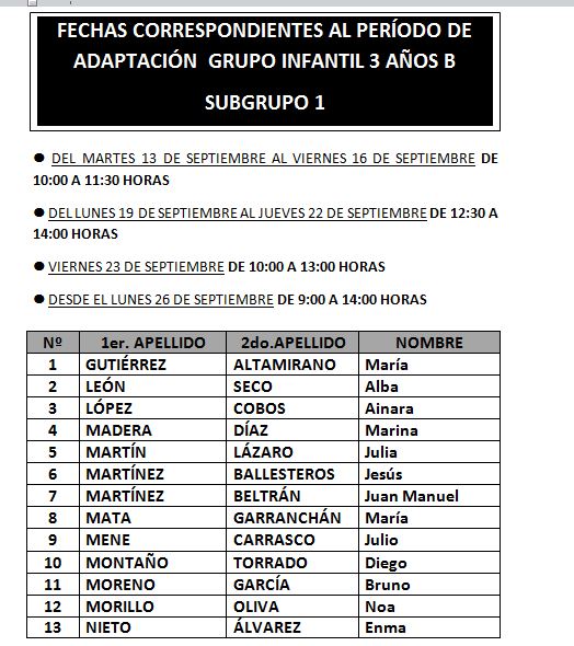 PERIODO ADAPTACIÓN 2016/2017 INFANTIL 3 AÑOS