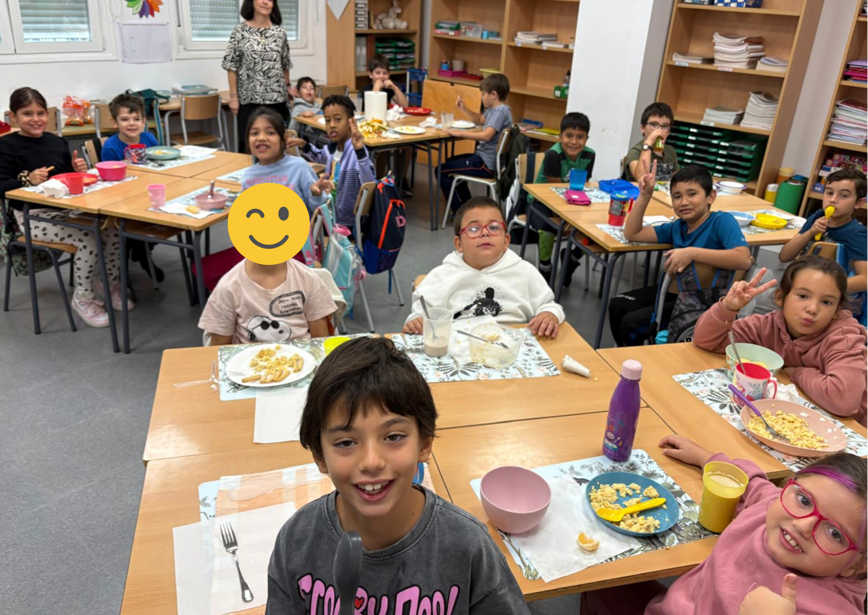 El dia 16 de octubre realizamos un desayuno saludable con la colaboración de la AMPA. Fue durante la primera hora de clase y aprovechamos este rato para fomentar hábitos de alimentación saludable mientras disfrutábamos de unos huevos revueltos, jamón, pan, leche, manzanas, plátanos o mandarinas.