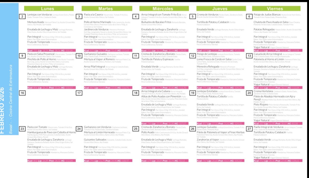Adjuntamos el menú del comedor escolar correspondiente al mes de febrero.